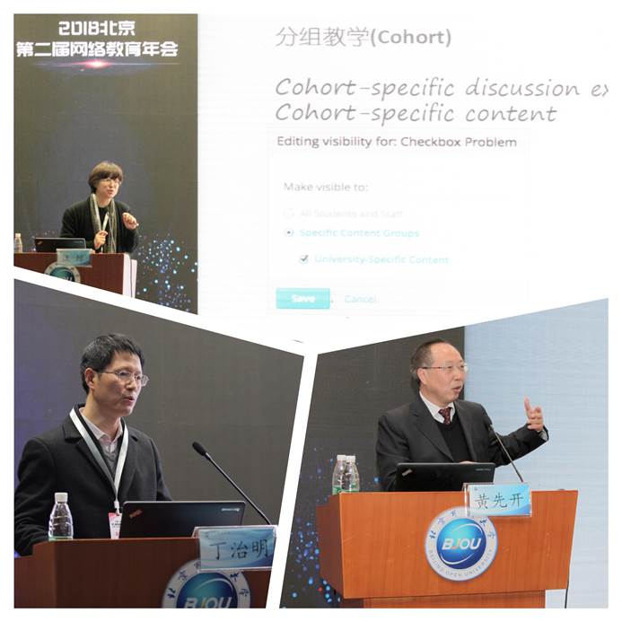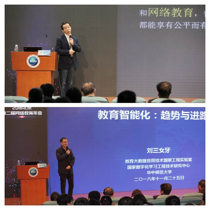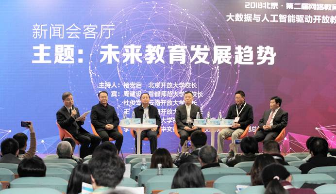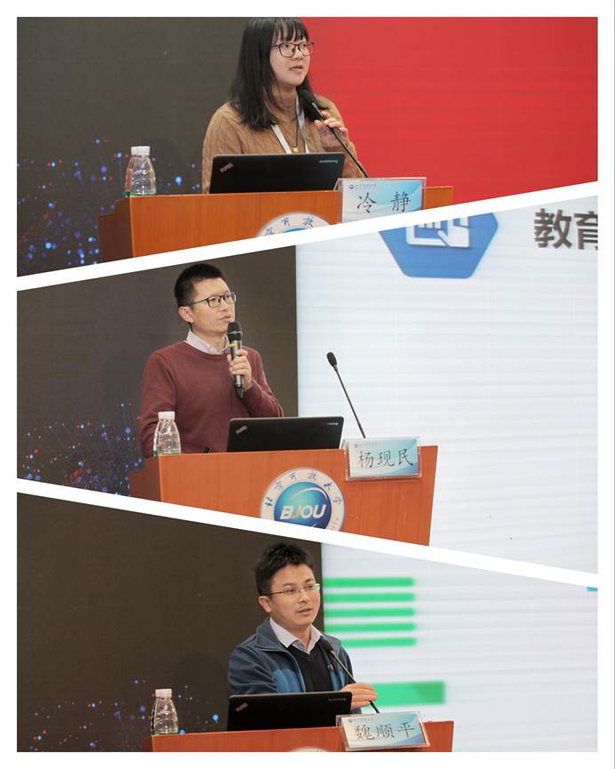 北京大学数字化学习研究中心主任汪琼教授、中国科学院软件研究所数据科学与数据智能研究中心主任丁治明研究员、天行网页版登录入口党委书记黄先开教授分别围绕技术创新助力开放教育质量提升,时空感知大数据技术在教育领导中的应用,以及运用人工智能技术助推开放教育转型发展等做了主题报告。