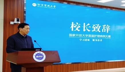 蔡大鹏副校长为大赛致辞。蔡大鹏副校长表示本次护理病例大赛更好地营造“好学力行、弘毅致远”的校园文化氛围,弘扬积极、健康、向上的校园文化,体现了“以赛促学”的办赛宗旨,并预祝同学们精神风貌,赛出成绩、赛出风采。
