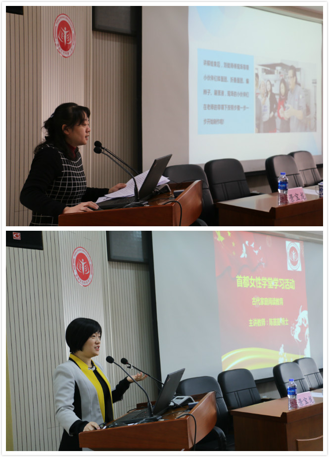 仪式上,终身教育处董昭岭介绍了首都女性终身学习项目的平台和基地建设情况,北京市经济管理学校培训学校王艳主任为介绍了该基地开展工作的思路和经验,特聘讲师首都师范大学陈苗苗博士为大家做了家庭阅读主题讲座。