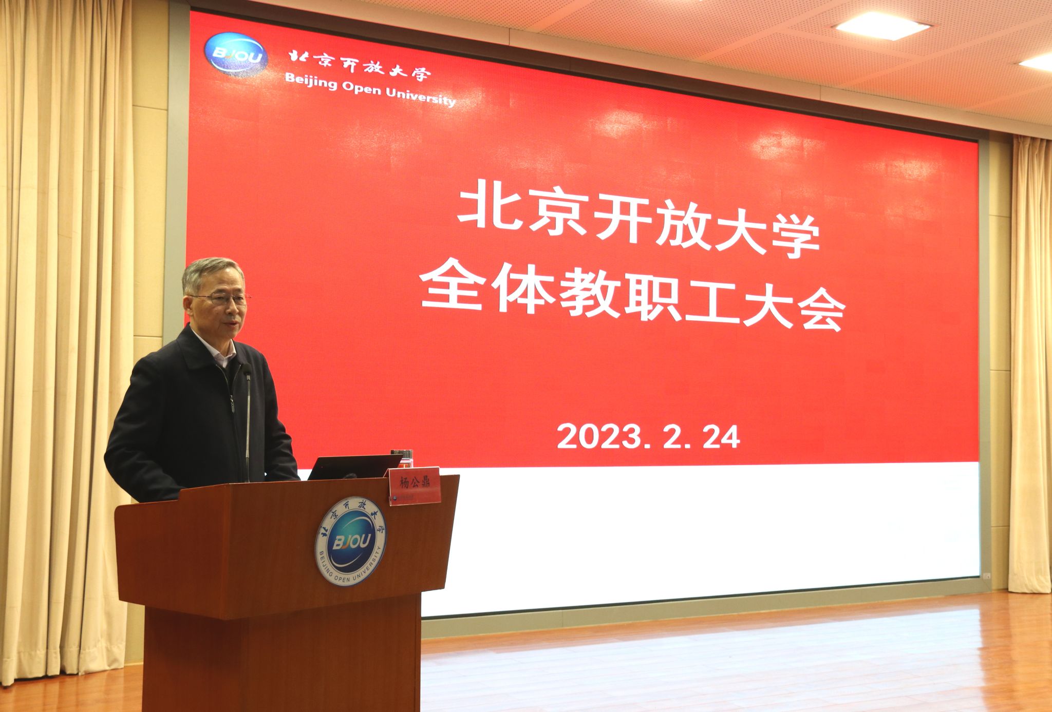 褚宏启全面总结了我校2022年的工作成绩,对2023年总体工作提出要求,对重点工作进行了部署。他指出,2022年全校上下在党委的坚强领导下,统筹疫情防控与事业发展,落实学校“十四五”规划,在党建与学校治理、招生与系统建设、学历教育与非学历教育、信息化与学分银行、科研与国际化、人事制度改革与队伍建设等重点工作取得显著成绩。对2023年总体工作提出要求时强调,学校各项工作要紧紧围绕“创新发展”工作主题,以创新推进高质量发展,坚持质量为本,坚持系统观念,坚持人才为先,坚持改革驱动原则,在促进党建和治理水平提升、学历教育提质创优、非学历教育提质增效、数字化转型升级、教师队伍活力释放、科研赋能作用更好发挥等重点领域实现新突破。褚宏启围绕深入学习宣传贯彻党的二十大精神,就做好党建与学校治理、学历与非学历教育、信息化建设、科研工作、队伍建设、管理与服务保障等重点工作进行了全面部署。