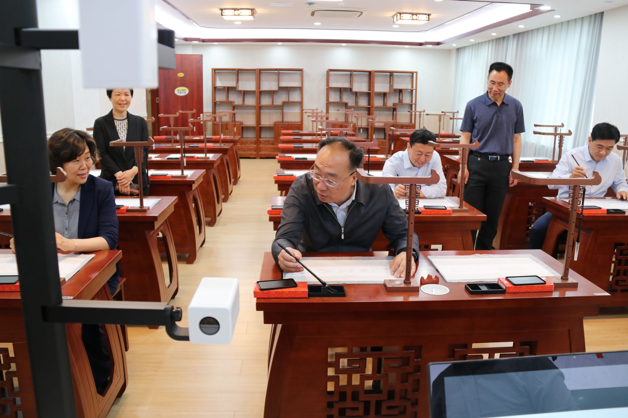 张革一行参观了北京老年教育系统首届文化艺术节作品展、老年学习体验中心等,听取了学校在服务和融入积极应对人口老龄化国家战略中,发挥体系优势和统筹引领作用,推进老年教育高质量发展方面的情况介绍。