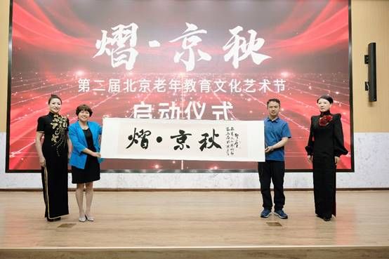 启动仪式上市白玲、陈敬文上台展示画卷,并宣布“熠·京秋”第二届北京老年教育文化艺术节活动正式启动。