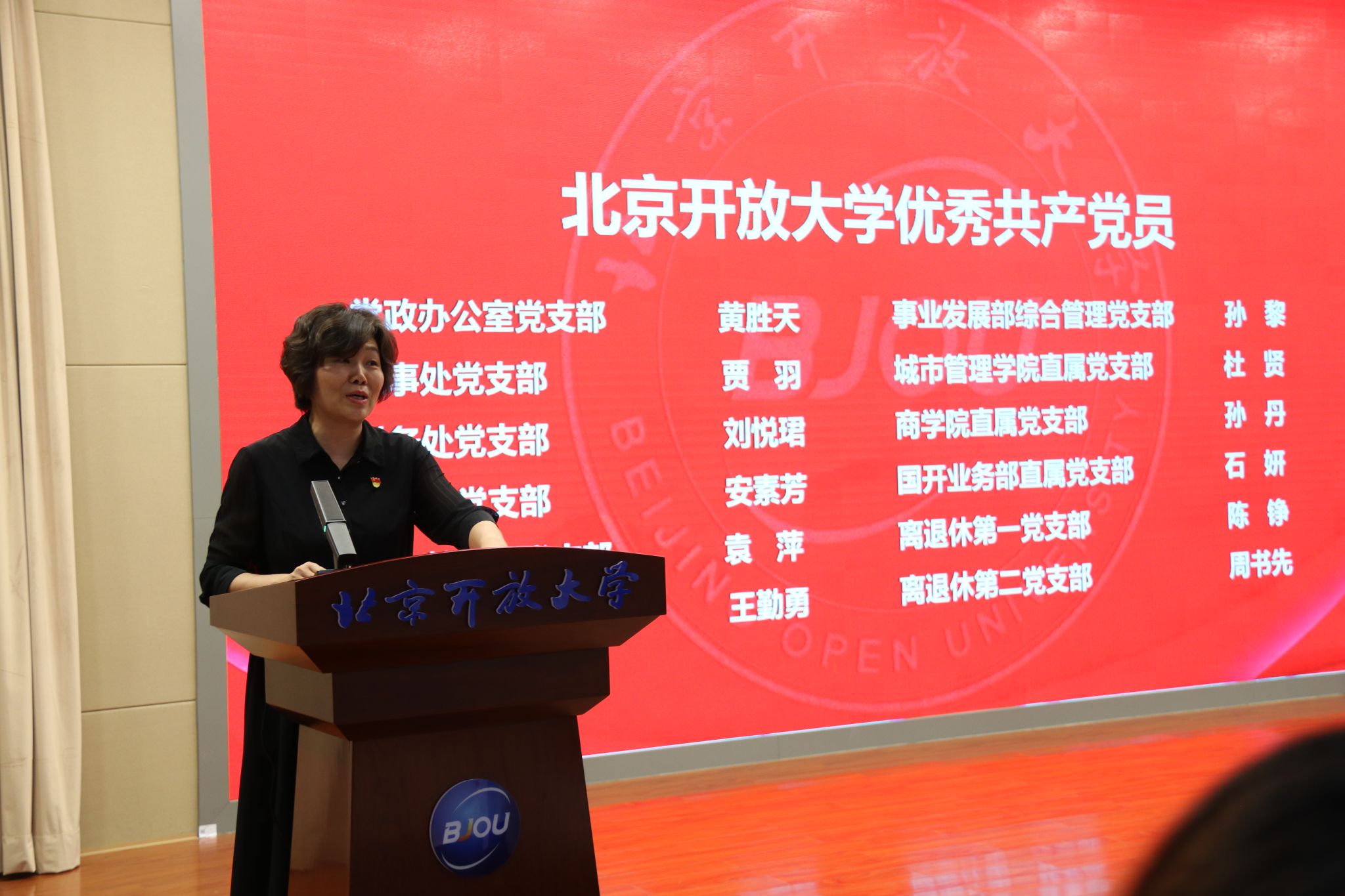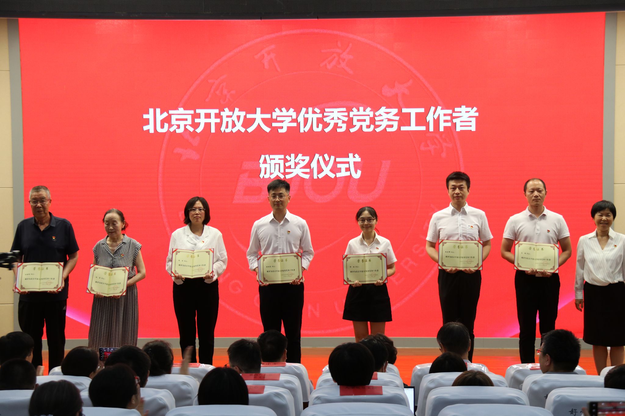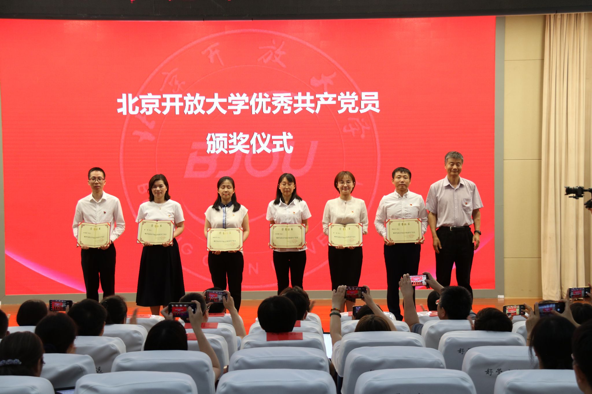 表彰大会在雄壮的国歌声中拉开帷幕。今年,我校事业发展部党总支书记李海英同志、国开业务部直属党支部书记闫晓春同志、城市管理学院直属党支部,分别被北京市委教育工委表彰为北京高校优秀共产党员、北京高校优秀党务工作者、北京高校先进基层党组织。黄胜天等12名同志被学校表彰为优秀共产党员,王斌等7名同志被学校表彰为优秀党务工作者,组织宣传统战部等4个党支部被学校表彰为先进基层党组织。肖霞等4位老党员获颁“光荣在党50年”纪念章。武丽娜等32位教师分别荣获学校课程思政教学设计比赛一、二、三等奖。