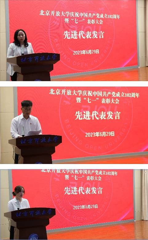 事业发展部李海英、城市管理学院国兆亮、商学院孙丹等3名同志代表受表彰的党员和党组织交流发言,分享他们忠诚党的事业、践行育人使命,增强党组织政治功能和组织功能,发挥党员先锋模范作用,争做“四有好老师”的成长感悟和先进经验。