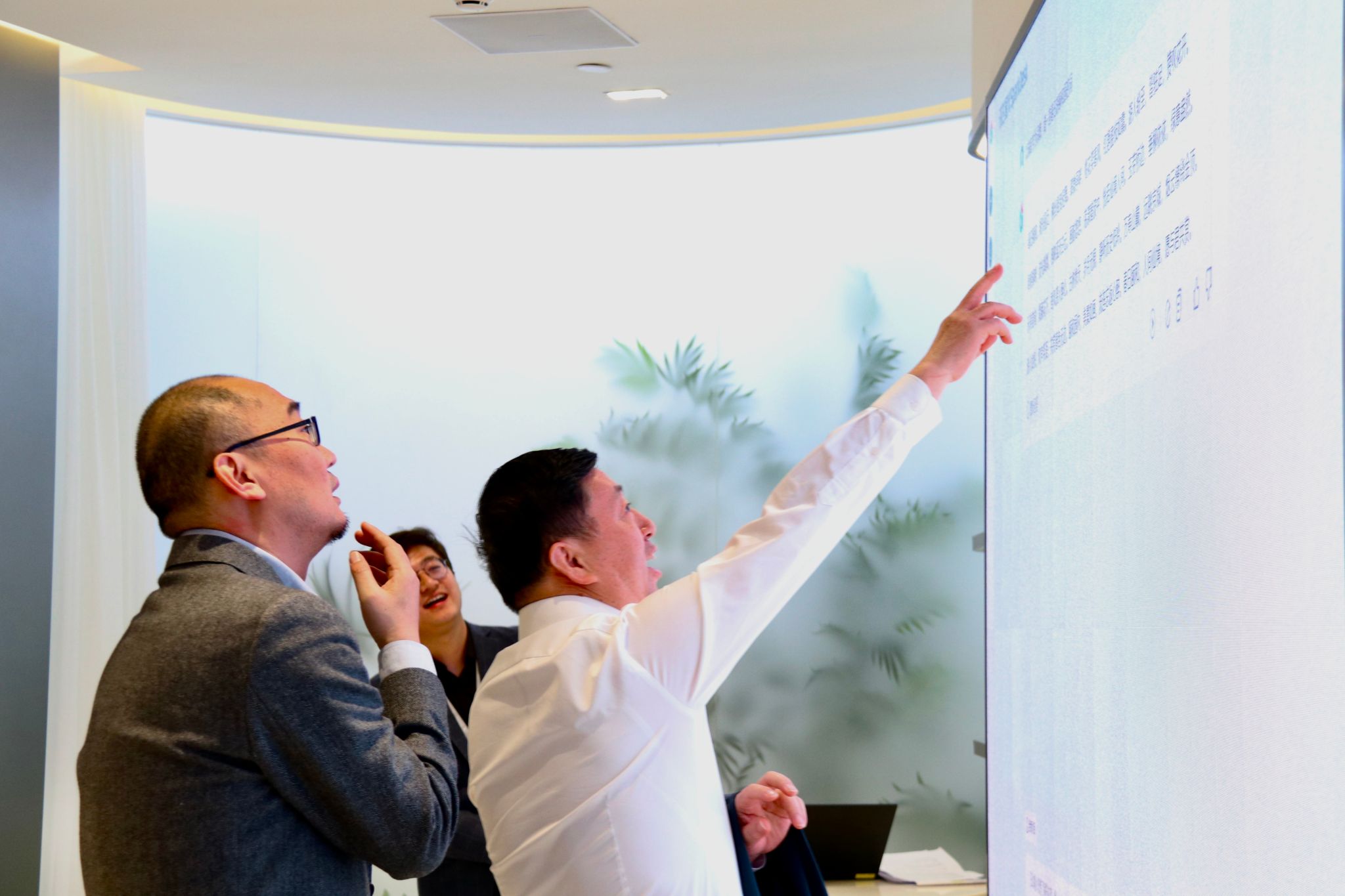 中心组一行实地调研科大讯飞人工智能展厅,体验智能设备,了解人工智能技术在教育领域的最新应用情况。