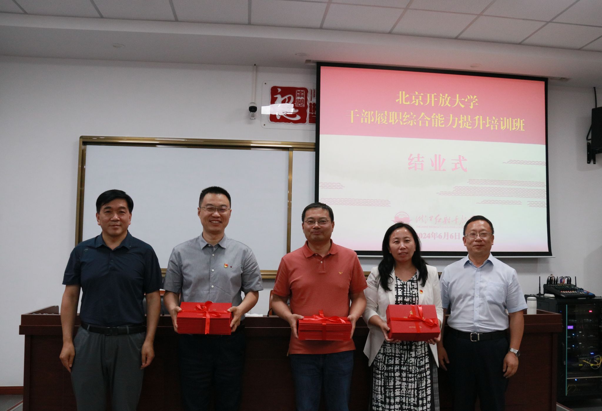 结业式上,3个学习小组分别汇报了对本次培训的感悟和收获。学校党委委员、纪委书记周启柏为参训干部颁发结业证书,并作总结讲话。他谈到,此次培训圆满结束,硕果累累,是一次寻根之行、赋能之行、聚力之行。他强调,中层干部作为组织的中坚力量,肩负着重要职责,要坚守“一心”、明白“二意”、认清“三位”、注重“四维”、做到“五心”、平衡“六个度”、用好“七个平台”、“八个抓手”,做全能“六边形战士”。他强调,大家要以此次培训为新的起点,坚守初心、联系实际、学以致用,以更加奋发有为的精神状态,求真务实、真抓实干的优良作风和专业履职的业务素养,投身到一流开放大学的建设中去,为学校高质量发展贡献力量!
