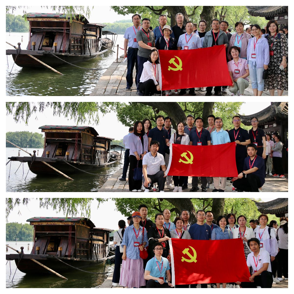 瞻仰南湖红船,参观南湖革命纪念馆,通过看一次展览,听一次党课,学一次党章,观一次专题片,瞻仰一次红船,重温一次入党誓词,身临其境感悟开天辟地、敢为人先的首创精神,坚定理想、百折不挠的奋斗精神,立党为公、忠诚为民的奉献精神,沉浸式感受先辈们的建党初心与强大的信仰力量。从“红船精神”中汲取攻坚克难、开拓创新的奋斗力量。