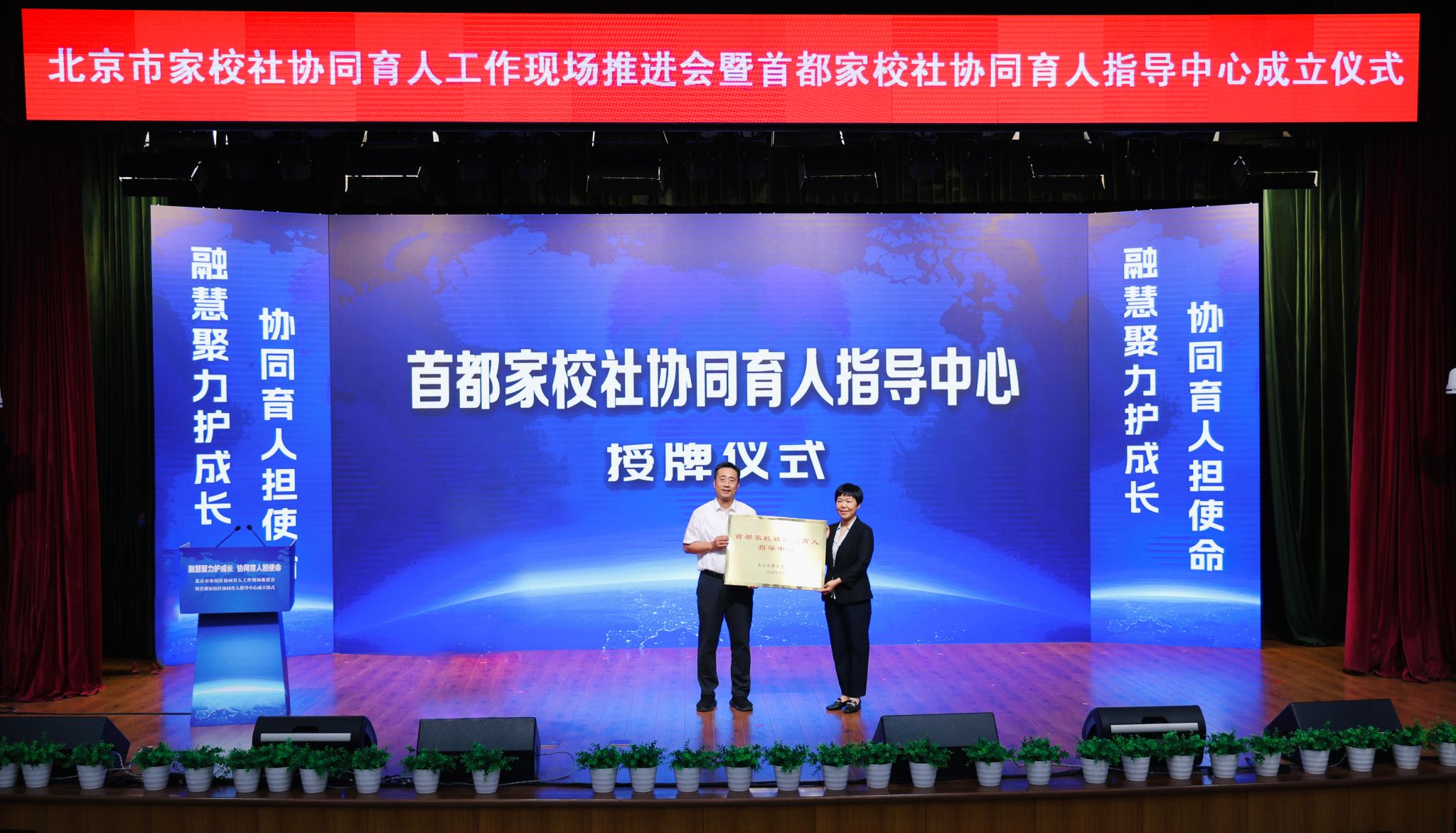 授牌仪式上,北京市教委副主任王攀为首都家校社协同育人指导中心授牌,天行网页版登录入口党委委员、副校长赵军代表学校接牌。