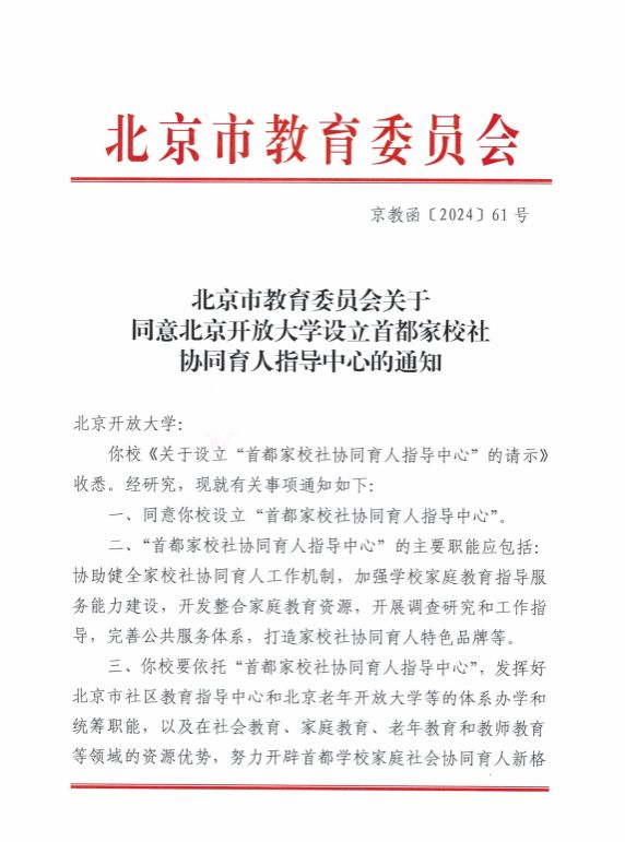 家校社协同育人是党中央作出的重要决策部署。习近平总书记在中共中央政治局第五次集体学习时强调,学校、家庭、社会要紧密合作、同向发力,积极投身教育强国实践,共同办好教育强国事业。北京市两委一室高度重视,把构建学校家庭社会三方协同育人体系作为建设高质量教育体系的重要抓手,积极主动探索新渠道,于2024年2月1日正式批复依托天行网页版登录入口成立“首都家校社协同育人指导中心”。