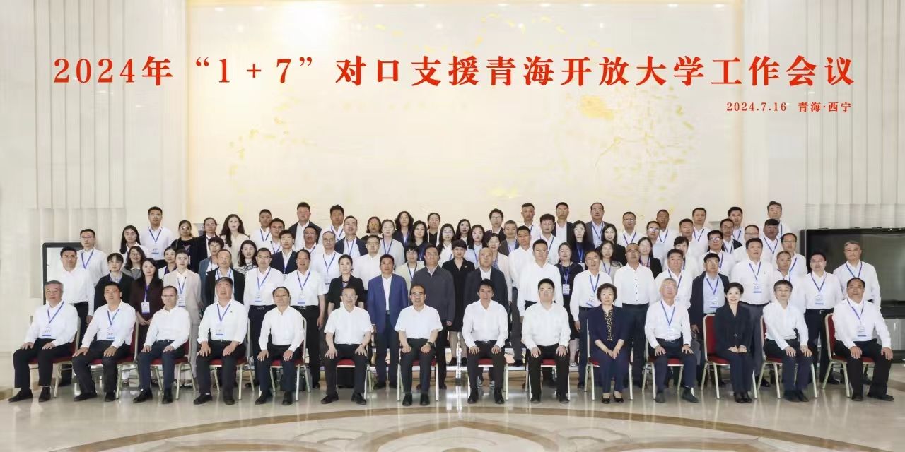 7月16日,2024年“1+7”对口支援青海开放大学工作会议在青海省西宁市召开,青海省政府副省长、省委教育工作领导小组副组长杨志文,国家开放大学党委书记、校长王启明出席会议并讲话。我校党委副书记、校长许晓革,教务处、终身教育处、城市管理学院、人文与教育学院(马克思主义学院)、党政办公室等部门负责人参会。