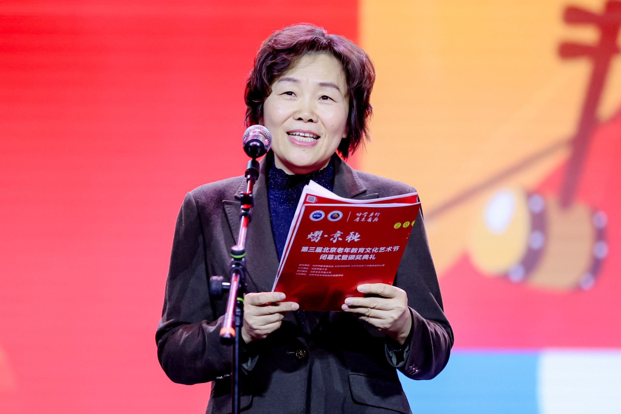 本届艺术节闭幕式精彩纷呈,中央电视台播音指导陈志峰、中央电视台电影频道主持人巧筠倾情主持。来自各区教委、民政局,全市各老年教育机构和为老服务机构的负责同志,演职人员600余人现场共同见证了北京老年教育文化艺术的盛典。