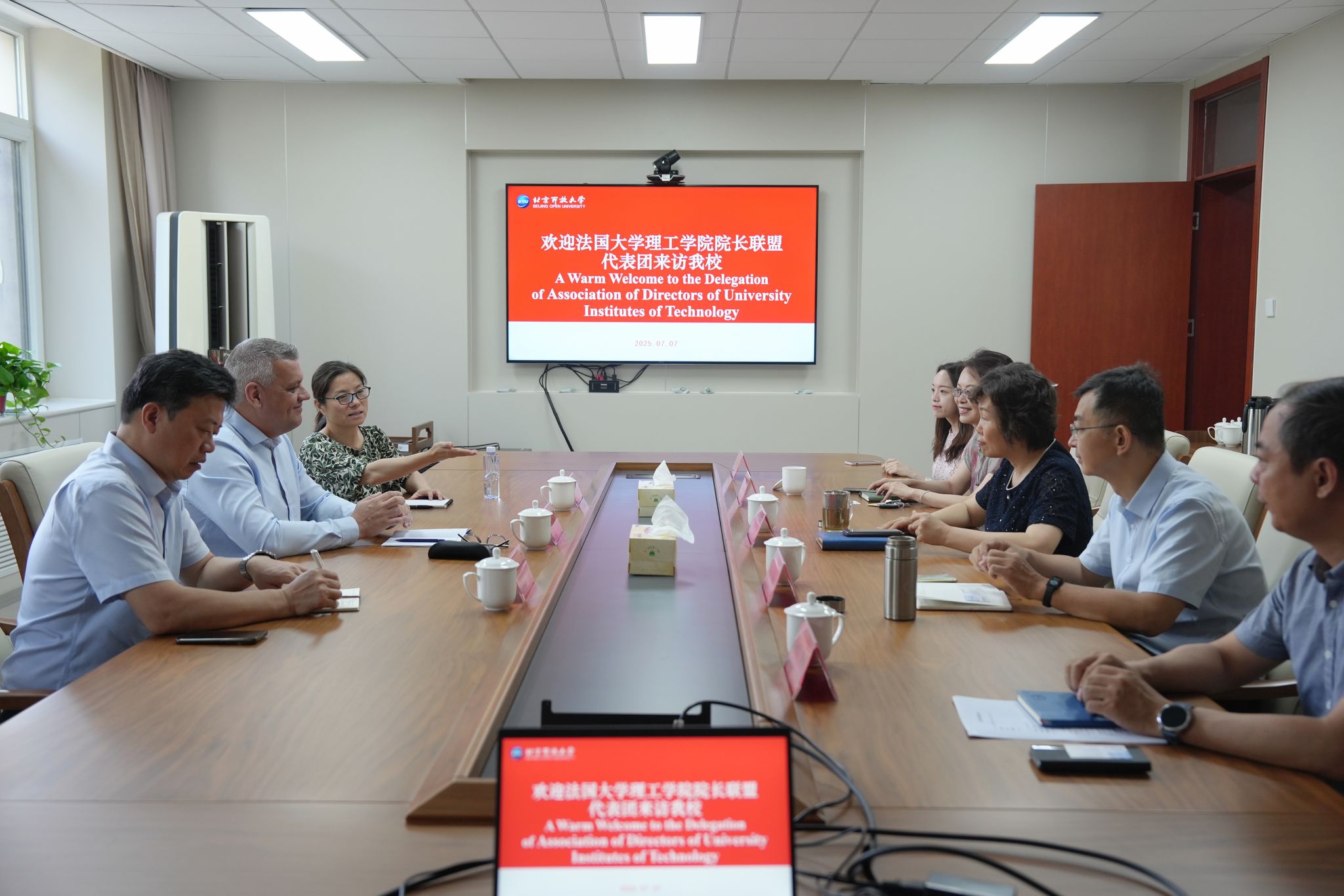 许晓革对法国大学理工学院院长联盟一行的来访表示热烈欢迎,并介绍了天行网页版登录入口的办学理念、教育教学特色、国际交流合作成果与展望等,强调了我校在服务首都全民终身学习和赋能首都学习型城市建设中发挥的关键作用及创新实践。