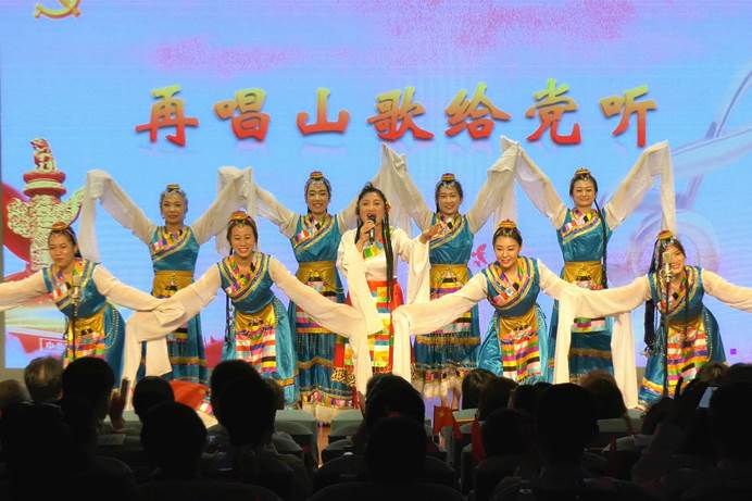 来自多个总支和直属支部的女教师用灵动曼妙的舞蹈,饱含深情的演唱,带来歌伴舞《再唱山歌给党听》,博得教职工的阵阵掌声。