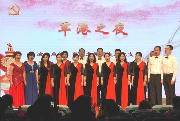 事业发展部直属党支部和社会教育部直属党支部共同唱响《军港之夜》,耳熟能详的词曲,带动了全场参与大合唱。
