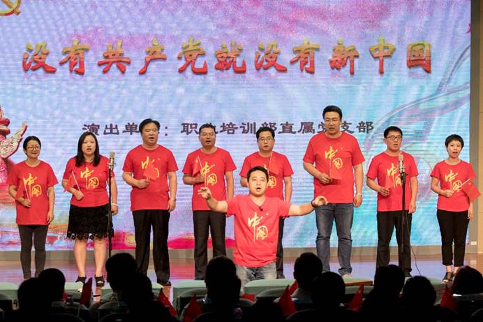 职业培训部直属党支部带来合唱《没有共产党,就没有新中国》,激情的歌声唱出了在座全体党员的心声!