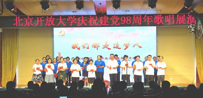 “初心向党歌咏,师风献礼祖国”,6月28日上午,庆祝建党98周年歌唱展演活动在我校隆重举行,学校领导班子成员及教职工全体成员参加。