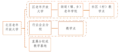 建校以来,学校努力提升治理水平和办学能力,制定了办学章程、建设计划和机构设置办法等顶层制度,明确了“高、精、特、研”的办学业务定位,成立了校务委员会。为了不断满足新时代北京老年人日益增长的精神文化和教育需求、提升北京老年人生活品质,北京老年开放大学紧紧围绕课程资源、服务平台、学习共同体、师资队伍、志愿者队伍、证书制度、研究咨询机构和老年大学联盟八大建设任务,积极开展工作。根据建设计划,北京老年开放大学将逐步形成市、区、街道(镇、乡)、社区(村)四级办学体系,并依托行业、大型企事业单位和老年服务机构设立直属分校,不断拓展老年教育覆盖面,形成点、线、面结合的办学组织体系。到2020年11月,已完成全市17个(16个区和燕山)分校和1个行业学院挂牌工作,初步形成全市老年开放大学系统架构。