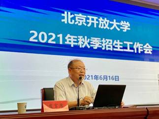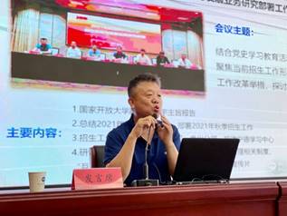 国开业务部主任张惊涛和事业发展部主任李海英分别就国家开放大学招生工作会议精神和自主业务招生重点工作进行了传达部署。