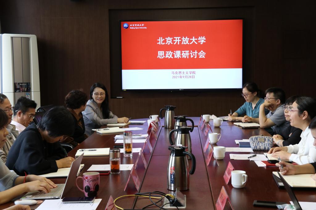 会议首先听取了王秀凤关于我校马克思主义学院成立近两年来的工作情况及下一步工作安排。国开业务部直属党支部书记、马克思主义学院院长闫晓春分别就我校思想政治理论课建设思路特别是以“形势与政策”课创新为抓手的工作进展、难点及努力方向等做了说明。专职教师围绕我校马克思主义学院建设机制、重点、教师发展、政策支持等进行了研讨交流。正在我校挂职的青海开放大学马院教师脱芸分享了青海开放大学思政课建设经验、在开放教育领域实施思想政治理论课的体会与建议。