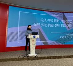 史红改、于舒洋、杜贤三位教师的研究报告获得学校调研报告评比一等奖。她们从不同的角度进行了分享。史红改以“家政服务与管理专业人才培养方案修订调研报告的撰写”为题,从如何开展专业调研和人才培养方案制定方面进行了阐述;于舒洋以“天行网页版登录入口服务首都市民终身学习的影响因素定量态势研究”为题,重点介绍了调研报告采用的各种研究方法以及如何选择调研方法;杜贤以“以书面形式思考——研究报告撰写的心得和体会”报告为题,从需求分析、研究框架、策略建议等方面分享了自己的研究心得。