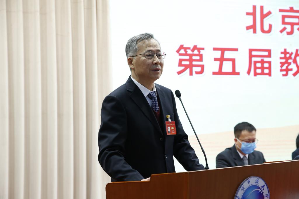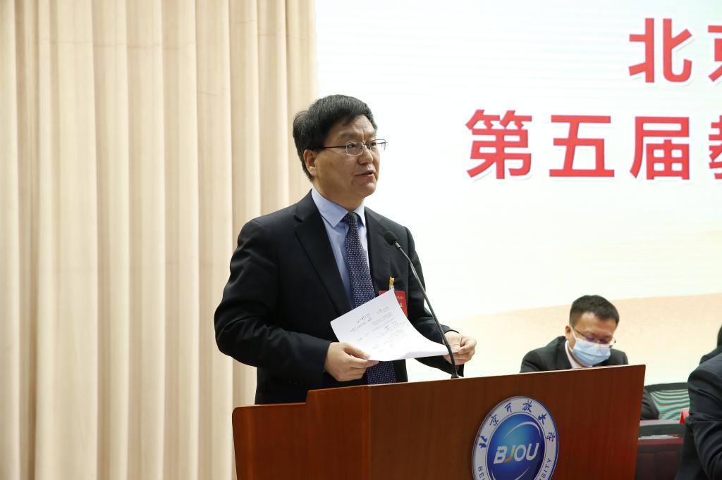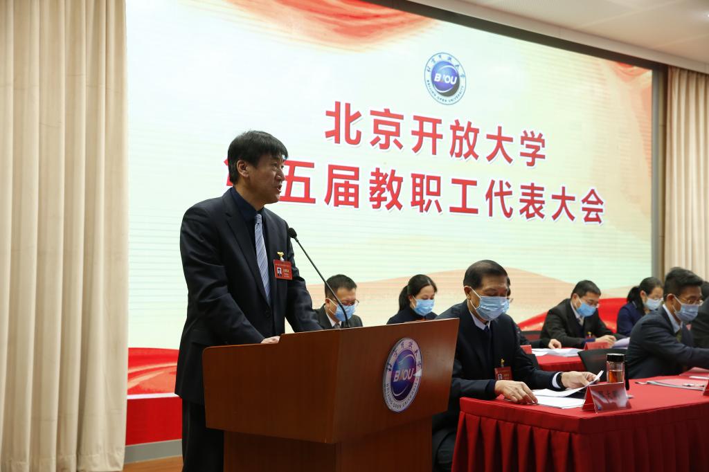 党委副书记邵长生代表第四届教代会主席团做题为《当好主人翁 奋进“十四五”为建设首都人民满意的新型大学贡献力量》工作报告,明确了本次大会主题和主要任务。回顾总结了第四届教代会的主要工作,提出了新形势下教代会的发展目标及思路,指出在坚持正确的政治方向下推进民主管理与监督,健全和完善制度建设,逐步形成包括“提、议、立、办、督、通、彰”七个环节的教代会提案工作良性运行机制。