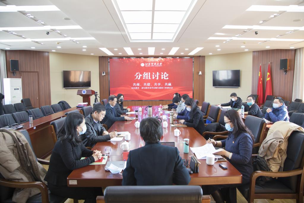 1月11日上午,市区两级社区教育、老年教育和学分银行建设高质量发展工作研讨会在我校召开。按照北京市疫情防控要求,本次会议采取线上线下相结合方式召开。学校党委书记杨公鼎、党委副书记、校长褚宏启、党委委员、副校长邵和平、党委委员、副校长蔡大鹏,以及各社区教育分中心、北京老年开放大学分校和北京市学分银行管理分中心负责人30余人和校内各相关部门负责人参加了现场会议,近100人收看了现场直播。会议由邵和平副校长主持。