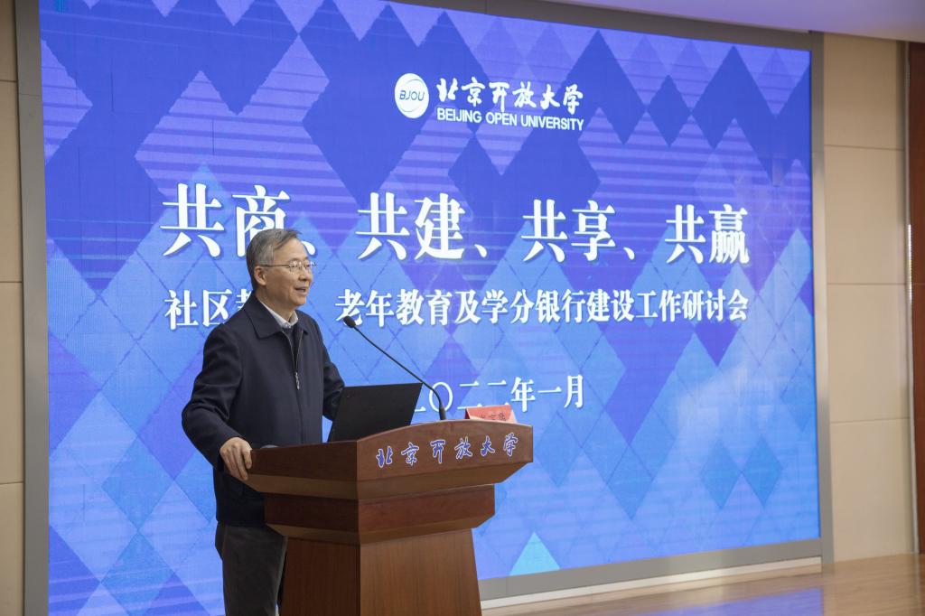 杨公鼎书记为本次研讨会致辞。他指出,在举国庆祝中国共产党成立100周年、“两个一百年”奋斗目标历史交汇、国家开启全面建设社会主义现代化国家新征程的重要历史时刻,学校党委整体谋划,加强顶层设计,制定了事业发展规划,确定了“深化改革年”重要任务,为“十四五”开好局起好步。在过去的一年里,学校《章程》获得批复,交流合作进一步扩大,社区教育统筹协调力度不断扩大,北京老年开放大学建设取得突破性进展,北京市学分银行作用进一步凸显;学分银行建设工作被列入市政府折子工程,卢彦副市长参加北京老年开放大学证书颁授仪式;“智慧助老”成为办实事重点抓手。这是各系统单位“学党史”“办实事”共同努力取得的重要成果。但我们应该看到,社区教育和老年教育的精品课程和品牌活动还不多,影响力还不够,资源整合力度不够,服务首都市民终身学习和北京学习型城市建设的贡献度还不够大,与首善标准还有很大距离。我们要以习近平新时代中国特色社会主义思想为指导,坚持稳中求进工作总基调,主动对接首都经济社会发展新需求,适应人民群众对教育的新期待新要求,凝聚系统力量,实现社区教育、老年教育和学分银行建设高质量发展,为服务首都全民终身学习,建设国际一流和谐宜居之都做出新的更大贡献,以优异成绩迎接党的二十大。
