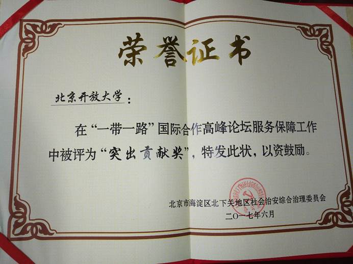我校在“一带一路”国际合作高峰论坛期间获得“突出贡献奖”